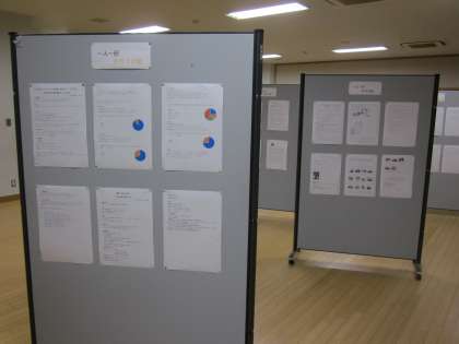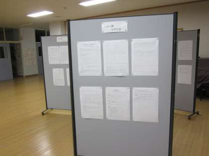 北棟の4階9年多目的スペースには,9年生の皆さんがKT(総合的な学習の時間)の授業で取り組んでいる『一人一研究』の内容を展示してくれています。