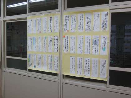 南棟6階の8年教室前廊下には,国語科と社会科の学習成果が展示されています。