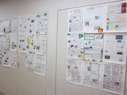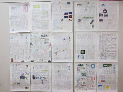 社会科では,都道府県調べの内容を,専用の用紙にまとめて展示してくれています。その地域の自然や文化,歴史や産業などについて,それぞれが工夫して,わかりやすい成果物に仕上げてくれています。