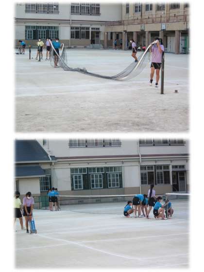 全員で準備も後片付けもするソフトテニス部の皆さんの,無駄のない動きは先輩から受け継がれています。
