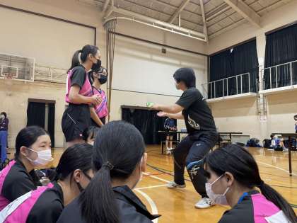男子の部は敗退しましたが,女子の部は最初は負けていましたが,粘り強く戦いを続けます。