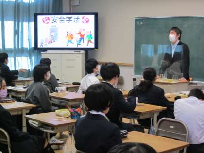 今日の安全学活では,地震,火災を想定した避難経路の確認を行いました。