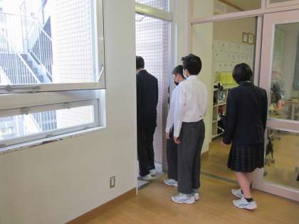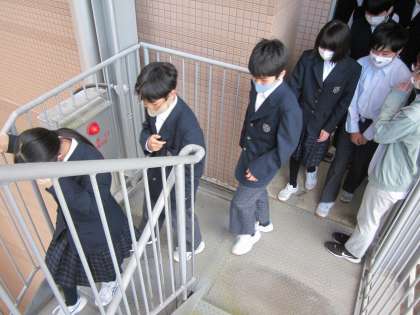 いつ発生するかわからない災害に備え,教室から非常階段を使う経路を,実際に歩いてみました。
