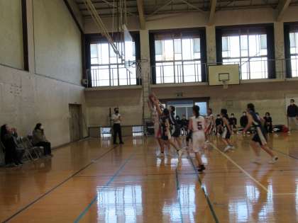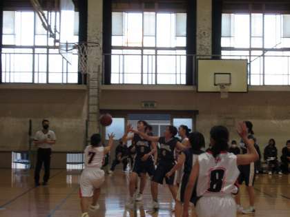 なかなか得点できない中,フリースローのチャンスが訪れます。ここで8年生のYさんが嫌なムードを断ち切る1本を見事に決め,この試合最初の得点となりました。