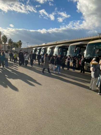 名残惜しいですが,いよいよナガシマスパーランド出発です。みんな時間厳守で集合できています。