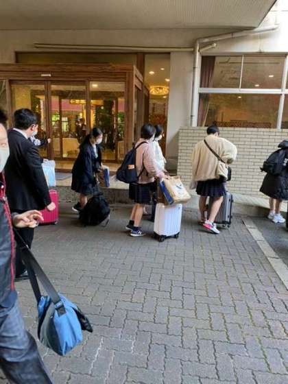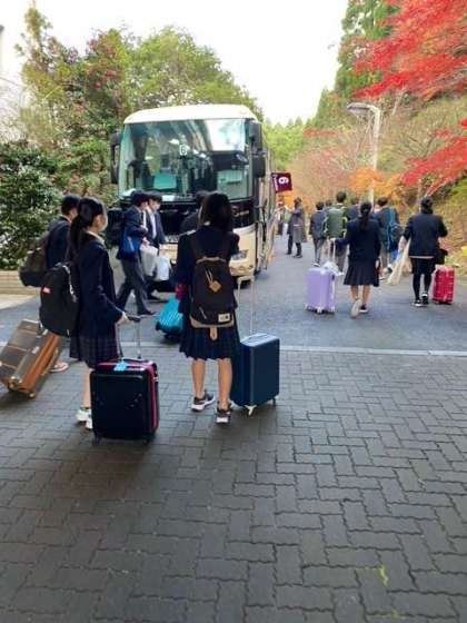 お世話になったホテルに別れを告げ,順序良くバスに乗り込んでいきます。