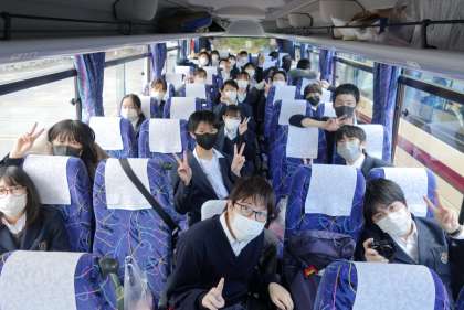 予定の集合時刻を前に,全員ビシッとバス座席に着くことができました。意識を高く,ルールやマナーを守る姿勢が継続できています。先生方の表情からも安堵と喜びが伺えます。