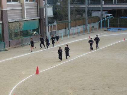 現在,8年,9年の体育の授業では,持久走に取り組んでいます。7年生は一足早く取り組んだのですが,この時期,恒例の学習となっています。