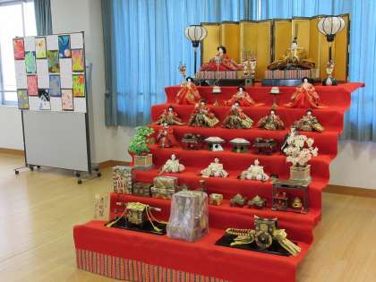 写真は,本校の昇降口に飾られた「ひな人形」です。皆さんを見守り,人生の幸福が得られるように願っています。