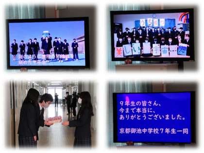 7年生,最後のクライマックスは,映像と実際に9年生の教室までコサージュを運ぶ様子が合わさり,盛り上がりましたね。
