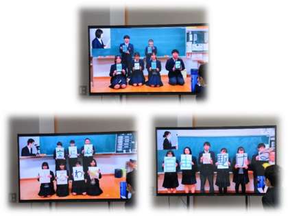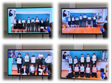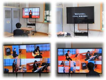 「旅立ちの日に〜今できる,最大限の発表を〜」のテロップが出ると,そこからはクラスなどのグループごとに歌った「旅立ちの日に」が合成され,一つの曲になっていきます。まるで9年生一人一人の思いのつながりが目に見えるようでした。