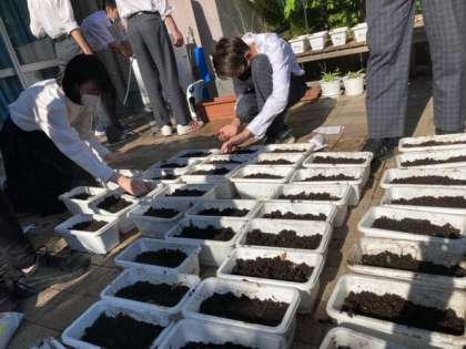 本日の放課後に,美化委員会で花の種植えをしました。