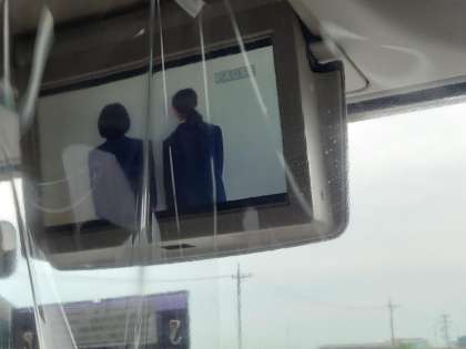 バスレクがはじまり,1号車バス内ではDVDを見ています
