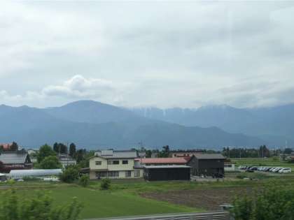 車窓は雄大な山並みが続いています。