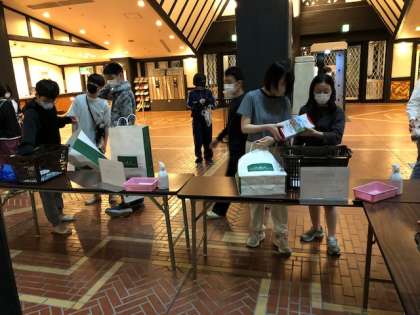 売店の外では、紙袋に名前を書いています。折角のおみやげなので間違わないようにしないといけませんね。