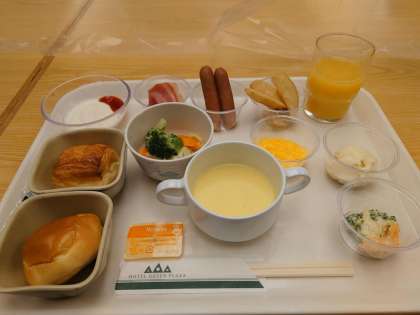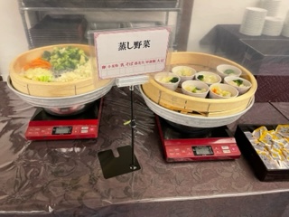 ホテルの方が小さな容器に取り分けてくださったものを,好みに合わせて選ぶという形式のバイキングです。