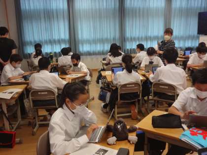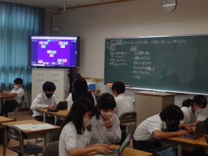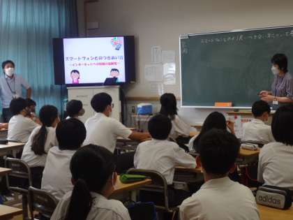 本日、7年生で「情報モラル教室」として外部講師としてインストラクターの方をお招きして、「スマートフォンとのつきあい方」を学習しました。インターネットへの不適切な書き込みのトラブル事例をもとに、問題点を整理し、その解決方法をグループで主体的に話し合いました。