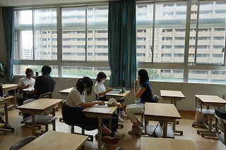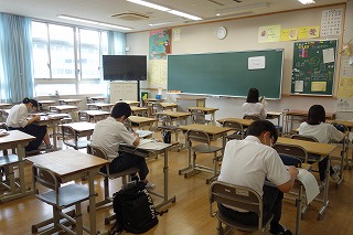 自主的に参加を希望した7年生から9年生までの生徒の皆さんが,各クラスに分かれて,午前中2時間の学習に取り組みました。
