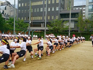 開会式での開会宣言や代表挨拶では,9年生らしい真剣な表情と態度でのぞむことができました。競技は100M走,学級対抗リレーから始まります。大きな声援を受けながら,全力で走る9年生。その迫力ある姿に会場も盛り上がりました。種目は「満水リレー」「棒るボルボル」「綱引き」と続きます。9年生は,クラスで作戦を練り,声をかけあい協力しながら取り組んでいました。