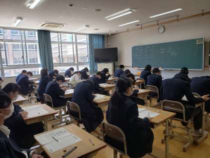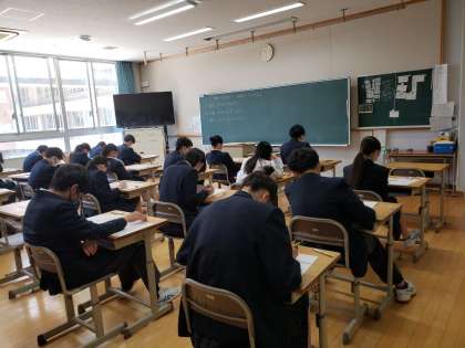 9年生は学習確認プログラムのテストを11日(木)に国語・社会・数学、12日(金)理科・英語と実施しています。