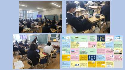 発電方法の仕組みとメリット・デメリットを発表し、各発電2名の発表が終わった後に、わかったことをカードに記入し、これからの発電割合について考えました。タブレット端末を駆使しながら学習を行い、ワークシートには政府が考える2030年の発電割合に対して、2030年の自分のベストミックスを主体的に考えていく課題がありました。
