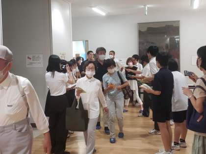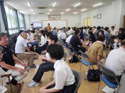 また、おもてなし部会では文化委員の皆さんと地域の方と一緒に「マスクケース」と、和紙を切張りして「栞」を楽しく作成していました。協力しながら共同で何かを創り上げることは素晴らしいことですね。そして、できあがった作品はしゃべり場に参加していただいた方々へお帰りの際にプレゼントとしてお持ち帰りいただきました。心のこもったお土産に皆さん喜ばれていました。暑い中、ご来校いただき本当にありがとうございました。