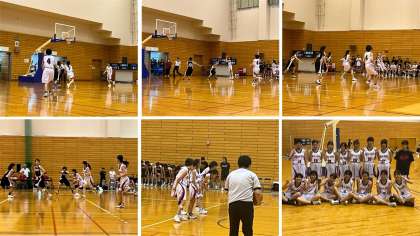 第1Q、序盤から攻められ先制点を許すと、0-10と苦しい立ち上がりでした。Kさんの気持ちの入ったドライブでファールをもらいながらもレイアップが決まり、さらにはフリースローのこぼれ球からMさんが得点をして流れが出来てきました。そこから一進一退の攻防。攻められたときもゴール下のリバウンドを頑張り、速攻で攻めました。その後、攻めるディフェンスで相手のミスを誘うも、8-22。
