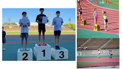 また、男子800mに出場したOくんが決勝レースで接戦の末、2位でゴール、全国大会参加標準記録まであと0.32秒に迫る好記録での入賞でした。9年Wくんも決勝レースを一緒に走り7位入賞でした。男子400mでは9年Tくんが決勝に進出し7位に入賞しました。今回の大会では、9年生が日頃の練習の成果を発揮し活躍をしました。