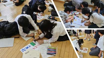 各委員会の活動の中で意見を出し合い、特に生活委員会では「ベル着をしよう!」「あいさつの前は静かに!」「廊下は走らない!」とデザインに工夫を凝らして呼びかけポスターの作成に取り組んでいました。