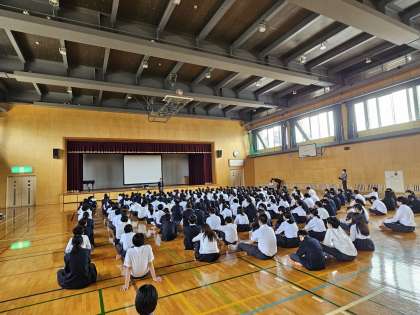今まで時間をかけて事前の学習を行ってきましたが、本日5限にアリーナで学年集会を行い校長先生からもメッセージをもらいました。