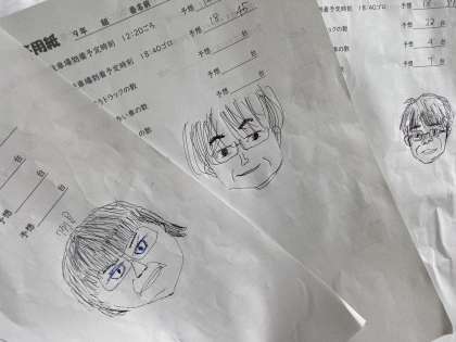 先生の似顔絵クイズ、似てます!似てます!上手ですよ〜