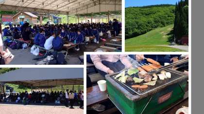朝から活動したので、お腹も減っています。快晴の空の下、みんな美味しくバーベキューをいただいています。
