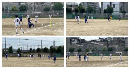 試合開始すぐにO.Sくんのミドルシュートで1点先取。その後に攻められましたがシュートブロックなどディフェンスが耐えました。そうしているとチャンスが来ました。相手ゴール前で押し込む中で、相手のクリアミスをM.Sくんが押し込み、2点目。前半終盤、フリーでパスが通り、1点失点。しかしすぐにトップのT.Kくんがドリブルでキーパーとの1対1を制し、1点すぐに返して流れを相手に渡しません。その後、中盤からの前に走らせるパスが通用して、惜しい場面が何度かありました。