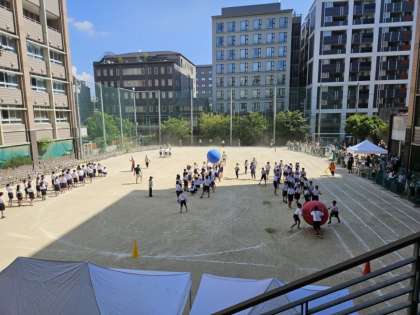 開会式からはじまり、100M走、満水リレー、棒るボルボル、学級対抗リレー、色別種目「綱引き」「玉入れ」、団体種目「大玉コロコロ」と盛りたくさんの競技内容です。どの種目も楽しそうにクラスごとに団結、協力しあい、そして一生懸命取り組む姿がありました。クラス全員が必死になり、一緒に喜びや悔しさを共有し、連帯感が深まっていきます。応援席での態度も立派で、それぞれの役割もきちんと果たしていて、進行もスムーズでした。素晴らしい集団行動でしたね。