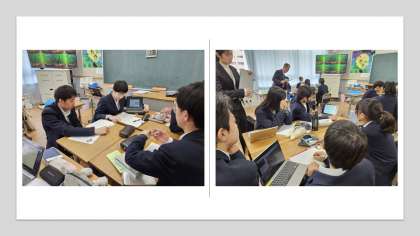 本時は、ロイロノートで作成したスライドをもとに、班での発表をしました。相手が興味を引くような話し方や、スライドの内容などたくさん工夫してできていたので、聞く人も興味津々でたくさん発表に耳を傾けていました。発表者も素晴らしいのですが、適度に寄り添いながら生徒たちが主体的に取り組むように指示を与える指導者も素晴らしいと感じました。