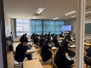 本日の生徒質問紙調査と理科については、タブレットを用いて調査を行いました。