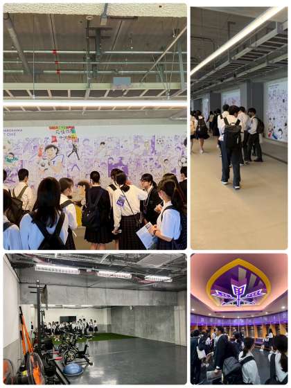 ガイドさんの説明を受けながら、スタジアムの中を隅から隅まで見学しています。
