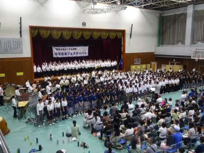 演奏会の最後には、参加校総勢350名余りのメンバーで、「翼をください」、「ふるさと」を合同演奏し、大いに盛り上がりました。
