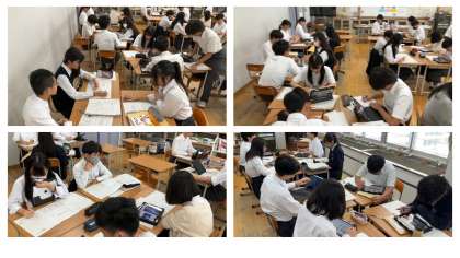 10月2日(木)2限目、8年7組で美術の研究授業を行いました。今回の題材は「躍動感を捉える」という題材で、自分の心動かされる人の動きを表現する授業を行っています。本時は全体の2時間目にあたる人のスケッチを行う授業をしました。テーマに合った動きを資料集やGIGA端末、中にはクラスメイトにポーズを取ってもらうなど、自分が作業しやすいやり方を選び、活動に取り組みました。それぞれ思い思いに調べ、躍動感感じる人のスケッチを描くことができたと思います。引き続き「躍動感」をポイントに置いて、立体作品の制作に取り組み、美術活動の楽しさを深めていってほしいです。