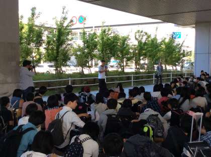 伊丹空港に到着後,結団式を行いました。同行してくださる添乗員さんの紹介も行われました。わくわく・ドキドキ!!  京都出発が遅れましたが,飛行機には無事乗れそうです。よかった!