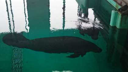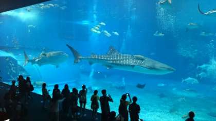 美ら海水族館と言えば,ジンベイザメ!! マナティも優雅に泳いでいます。