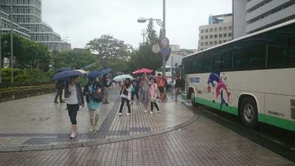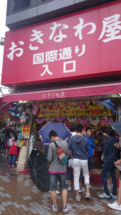 予定より少し早く国際通りに到着しました。あいにくの雨模様ですが,しっかりと沖縄を満喫してほしいと思います。午後3時30分には,沖縄県庁前集合です。集合時間には遅れないようにね!