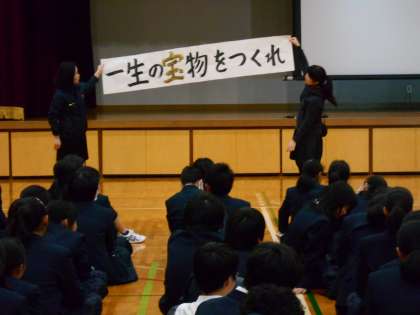廊下を通ると,緊張しながら自己紹介をしている様子が見られました。また学年集会では,学年の先生からこの1年間の学年目標や学習,生活などについての話がありました。