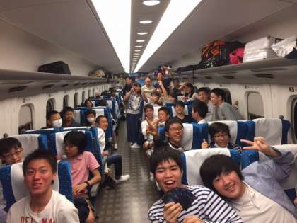 京都駅を出発して博多駅まで2時間45分の新幹線の旅。集合時間が早かったにも関わらず,子ども達はみんな元気にゲームやおしゃべりに花を咲かせているようです。博多駅に到着した後は,バスに乗り換えて『ボタ山わんぱく公園』へ向かいます。お天気が良くで何よりです。