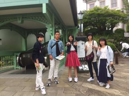長崎市内班別研修がスタートしました。班別研修では,「中華街北門付近」と「原爆公園原爆落下中心地付近」の2つのチェックポイントの他に,3つのミッションをクリアするために,「指令書」が出されています。事前に立てた計画に従って各班がホテルを出発していきました。こちらの写真はホテルのすぐそばにある「グラバー園」です。ミッションの一つである「班員の仲間とコミュニケーションをとり,絆を深める」ために,しっかりと協力していきましょう。