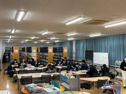 本日が、回復授業の最終日で国語の授業でした。図書室にて、課題に向けた調べ学習に取り組みました。