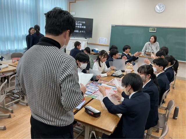 本日は、8年生の家庭科の授業で、介護施設で働く方をゲストティーチャーとしてお迎えし、授業を行いました。