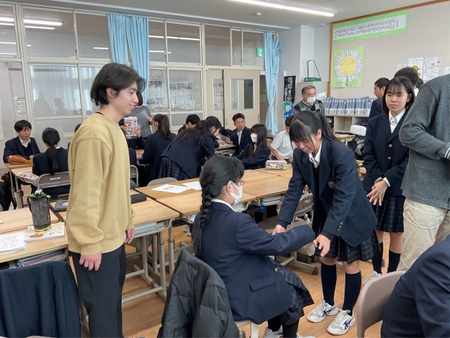 14日(水)に続き、16日(金)に8年の家庭科では、高齢者理解を深めるためにゲストティーチャーを招いて授業を行いました。