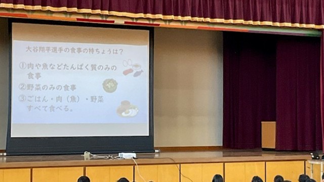 ることやよく噛んで食べていることなどを児童たちに動画を通して伝えてくれました。