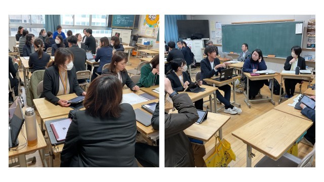 事後の研究会では教職員がより良い授業や子どもの力を伸ばすためにどんなことができるか4校の枠を超えて活発に話し合われていました。